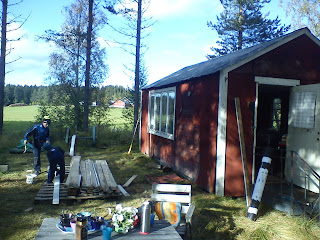 Vi har dragit på oss mera jobb, en "ny" stuga som vi börjat renovera. Eftersom allt måste fixas förutom golv och stomme så lär det ta sin lilla tid. Men vi har ingen brådska....