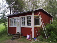 Helgen var nästan till ända nu. Barnen har varit otroligt snälla och låtit mamman och pappan få sova ut både lördag och söndag vilket var nödvändigt. Storebror har jobbat med veden och fått sin löning på tjugo riksdaler. Lördagen avnjöts med en utflykt till stugan med kökssoffan som svärmor målat så fint.....! Efteråt så hämta vi mera ved som lillebror nu ska få tömma med mor till veckan. undra om hon betalar lika bra? Resterande av dagen kommer att tillägnas åt städningen med betoningen på STOR!