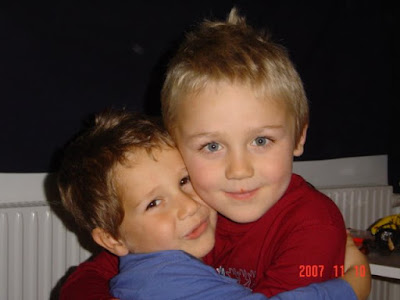 Idag var en sån dag, först så låg han tyst och stilla mellan oss men till sist så började det att krypa i honom så han började att klappa och stryka på mig, "men ligg still" väste jag trött. "Men mamma, jag vill ju bara massera dig och smörja din rygg" svarade han. Han vet att det alltid är uppskattat för han är jätteduktig och har otroligt starka nypor och ett enormt tålamod. Ok då sa jag och la mig tillrätta. Han smorde och knådade och grejjade på olika sätt och vis och jag låg och njöt halvslumrande, han höll på i minst en halvtimme. Samtidigt så pratade han viskande(för att inte väcka pappa) om ditt och datt. När han ansåg sig vara klar så kröp han ner bredvid mig i sängen igen och låg och funderade ett bra tag. Sen så kom det: "mamma, vet du varför jag väcker dig så tidigt? Det är för att jag har så mycket att prata med dig om". Jag kände hur irritationen över att blivit väckt så tidigt flög sin kos.... Han är ju helt enkelt underbar den älskade plutten!