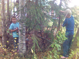 bilden kommer från köket i stuganIdag så har vi haft besök av "två damer" vilka barnen la beslag på direkt och skulle visa rummen och spelkulorna för och jag tror nog att det föll väl ut. Den 17:e ska deras material vara sammanställt för vidare transport och vi ska godkänna det innan det görs så det bör ske inom de närmsta dagarna. I slutet på oktober eller början på november så bör det hela vara klart men man vet ju aldrig hur lång tid det tar... Så nu är det bara för alla att hålla tummarna...