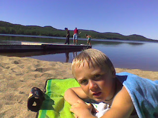 Vi har njutit av sommarvärmen mest hela sommaren och så i natt överraskade hösten oss. I morse när darlingen skulle åka till jobbet så var det enbart 5 grader. Nu har vi ca 18 men det känns att det är kyligare luft nu... :-( Vi badar ändå (det är fortfarande 21 grader i vattnet) och njuter av sommarlovets sista vecka... Igår firade vi lillebror med paket och tårta, han blev även uppvaktad av både släkt, vänner och grannar vilket uppskattades. Han fick även grattissamtal från söder vilket var skoj... Både han och storebror deltog vid den årliga jaktstigen här och kom hem med både medaljer och fina priser.