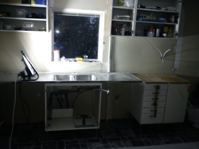 Fördelen med att allt övergår till normala rutiner är väl att vi kör igång med köket igen, kan ju vara trevligt om vi slipper laga mat i garaget när det blir minusgrader... Vad som står på agendan är att sätta upp väggskivor, lägga golv och sätta innertak sen så ska skåpen upp och efter det panel och tapeter och inte att förglömma lister. Sen så ska det väl målas här och där men det känns som att då är det i princip klart...