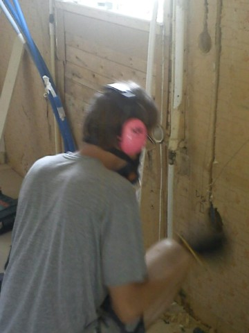 I kväll då vi satt och drack kaffe i köket(eller vad som ska bli köket) så hörde vi ett rejält brak och sekunden efter så hördes ljudet av vatten som sprutade. Vi rusade in i badrummet och möttes av vattenånga och sprutande hett vatten, på golvet i duschen låg vår varmvattenberedare som sekunderna innan suttit fast på väggen. Snacka om änglavakt, hade det hänt 2 timmar senare så hade något av barnen stått i duschen och då hade vi nog bara haft ett barn kvar för ingen hade överlevt den där smällen av 100 kg varmvattenberedare som kom flygande genom luften. Håret reser sig på armarna när jag tänker på vad som hade kunnat hända!